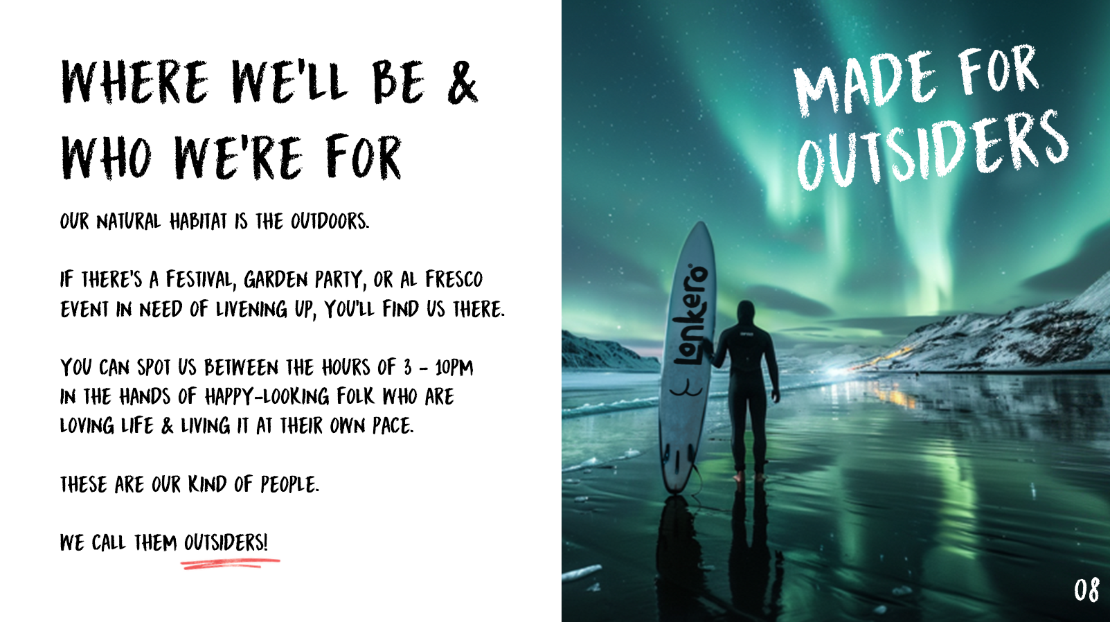 Designed to attract our tribe of easy-going and adventurous Outsiders.